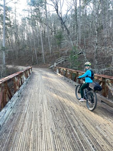 Big Brushy Rec Site to Hot Springs. And Jennifer was a trooper. Her first bikepacking trip.